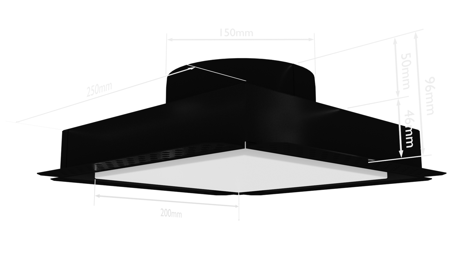The Ventech VSQ250M is a discreet, architectural ceiling grille designed for seamless integration into modern interiors. Featuring a clean 250mm square negative detail with no visible framework or fixings, it offers a refined, minimalist finish.