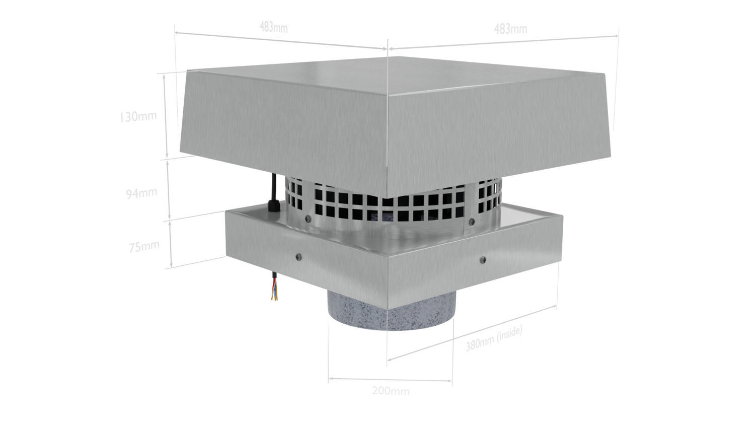 A slim-line curb mounted extract fan with the lowest profile for this capacity in its class. Designed to be mounted on a flashed curb constructed by others. The covers are available in powder coated aluminum.